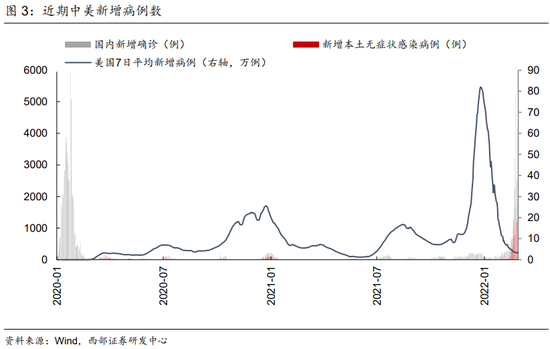 国内方面,疫情拐点初步显现,防疫诊疗方案调整后疫情对社会与经济的影响显著降低。据国家卫健委消息,3月18日当日我国新增确诊病例2228例(境外输入病例71例,本土病例2157例),新增无症状感染者1823例(境外输入110例,本土1713例),主要集中在山东、上海、福建等地区。整体来看,虽然无症状感染者仍有所上升,但是新增确诊已经较3月14日的高点呈现回落。在3月15日,国家卫生健康委公布了最新版新冠病毒肺炎诊疗方案,在对轻症病例管理修改为集中管理,同时出院后的健康监测时间也由14天缩短为7天居家健康监测。随着疫情管理模式的逐步优化,此轮疫情对经济的影响将会小于2020年,线下经济的修复也更加值得期待。