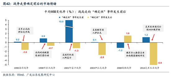 影响战局走向的“确定性事件”之后,市场的风险偏好才会边际好转。1990年代以来的6场主要战争中,影响战局最终走向的“确定性事件”(如美军/俄军等大国介入)发生后,市场的风险偏好(VIX指数)一般会改善。我们判断:当前俄乌冲突中,欧美已经明确表示不会介入,当前的俄乌战局走向仍有一定的“不确定性。
