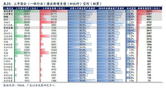 (2)经测算,在工业企业层面,如果国企的杠杆率加回到16年的相对高点,则将释放总计约15万亿的信贷需求。在上市公司层面:如果建筑装饰/公用事业/钢铁/化工/有色5大行业的杠杆率加回到10年以来的相对高点,大致能释放6.74万亿信贷需求。我们判断:国企传统产能“低碳转型”既是碳中和“后破”的主要方向,也是“稳增长”宽信用的关键线索,建议聚焦国企传统产能“低碳转型”的5大领域:建筑(装配式建筑)、公用事业(绿电)、钢铁(特钢)、化工(煤化工和新能源材料)以及有色(再生铝和有色小金属)。