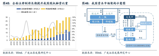 全面注册制时代将进一步提升股权融资比重。两会政府工作报告确定“全面实行股票发行注册制”,根据科创板/创业板/北交所注册制改革经验:第一,预计全面注册制(主板注册制)Q3落地;第二,渐进式改革下A股“抽血效应”无忧。