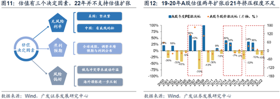 第二,简单用货币信用框架研判估值、而忽视了估值有三个决定因素。简单沿用货币信用框架,认为货币信用友好就会支撑估值扩张;实则估值有三个决定因素(无风险利率、盈利预期、风险偏好),22年是“美国坚决紧+中国有底线的松”,A股估值在19-20年连续2年扩张后21年的挤压程度明显不够。主流研究沿用货币信用的策略框架,误认为只要货币信用条件友好,A股估值就会上行。