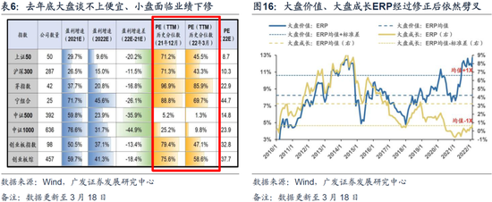 A股估值在19-20年连续扩张2年之后,21年仅估值挤压了13%显然不足,且大盘股(22年业绩环比变动稳定、但不够便宜)和小盘股(便宜、但22年业绩下修压力大)各有瑕疵,这是21年底我们判断赔率较差的背景。