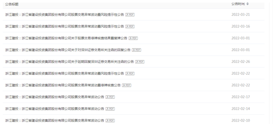 此间,浙江建投一直在提示风险。3月20日晚,浙江建投再度发布股票交易异常波动暨风险提示性公告,请投资者理性投资,注意风险。