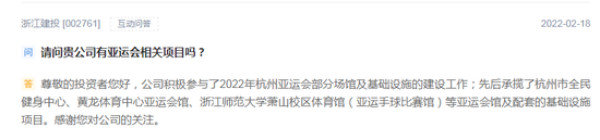 从上述回复和股价走势来看,浙江建投堪称“杭州亚运会概念一哥”。