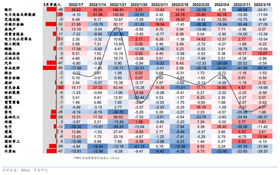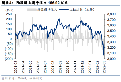 3)3月以来,在俄乌战争、中概股退市风险等影响之下,市场经历一波普遍性超跌,3月7日至3月15日7个交易日北向净流出668亿,单日最高净流出量为历史第三高,考虑到年初至3月大盘累积的跌幅+私募产品平仓线,我们判断北向资金流出与绝对收益资金平仓在这一阶段形成了叠加负反馈。