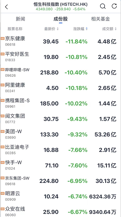 港股方面,跌得比较厉害,中概互联代表的恒生科技跌了超5%。