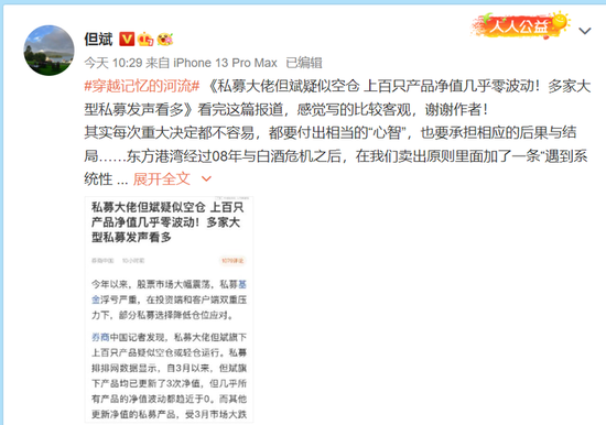 3月25日上午,东方港湾董事长、私募大佬但斌在微博回应称,该报道写的比较客观,谢谢作者!