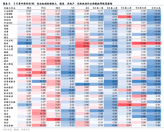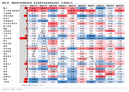 北向资金:过往是逆势资金,但由于去年以来交易行为变化大,我们将其归为顺势资金,上周净流出128亿元,连续三周净流出,3月食品饮料、非银、医药、汽车、计算机、银行等行业净流出最大,多是配置型外资历史上偏好的板块。融资资金:融资买入额占成交额比重相比3月第二周、第三周有微幅改善,融资资金上周转为净流入45亿,但相比一季度融资资金净流出的1207亿元是杯水车薪。新发偏股型基金:仍然低迷,缺少像2021Q1那样的“惯性补给”,2021Q1A股大跌,但彼时新成立偏股型基金9586亿份,成为了大跌之后的增量补给,但2022Q1新成立偏股型基金仅1646亿份。