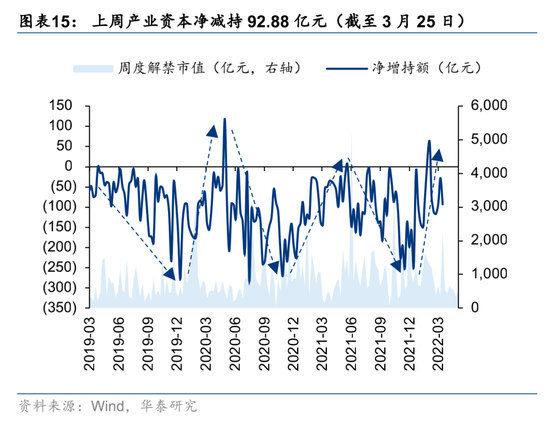 产业资本是A股最重要的逆势资金。分狭义产业资本增减持(大股东及董监高)和上市公司回购两块来看:狭义产业资本在今年一季度的净减持额相比去年四季度有明显收窄趋势,2月上旬曾出现过阶段性净增持;3月上市公司实施的回购金额高于1月和2月,但与去年相比回购额度不算很高。后续产业资本的动向仍需观察,逻辑上考虑,我们或许较难期待显著的增持或回购:在资源品价格高、制造业产能利用率不低的情况下,产业资本在偿债\分红、回购\增持、补库\资本开支等方向上,选择回购\增持的概率或比例可能有限,而选择原料补库\资本开支来保障供应安全的概率或比例可能更高。