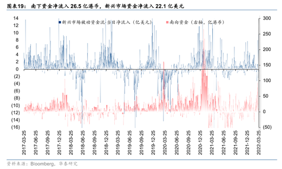 上周追踪新兴市场权益的前50大ETF净流入22.1亿美元;南下资金净流入26.5亿港币,较上一周(净流入263.48亿港币)大幅下降。