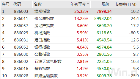 受益于煤炭涨价,煤炭板块是今年最亮丽的板块,在沪指跌近11.07%的情况下,行业指数逆势上涨25.32%。