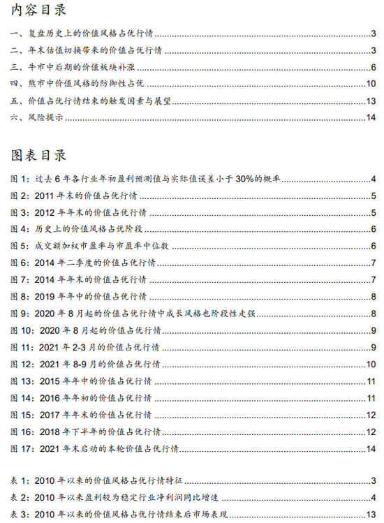 在A股全面牛市的中后期,市场往往会出现所谓“消灭价值洼地”行情,这也是推动牛市时期价值风格阶段性占优触发因素。历史上2014年、2019年、2020年与2021年期间的价值占优行情均发生过类似情形。