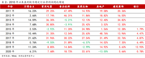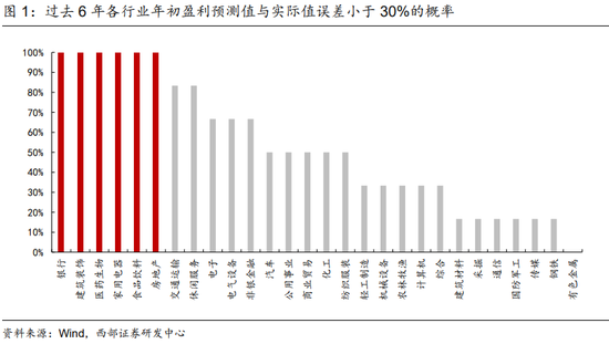 1)业绩增长的稳定性。在业绩可预测的前提下,业绩具有较高增长性的行业才会出现估值提升的空间。历史上看,次年业绩预期良好的消费、地产与银行业往往最有可能在岁末年初出现估值切换行情。