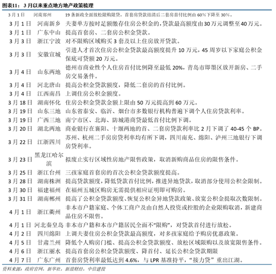 稳增长决心坚定,近期房地产政策放松意图明显,政策底信号进一步确认。据统计,今年以来全国房地产调控政策发布超过150次,超过60个城市关于限购限售、首付比例、贷款利率等相关政策有所放松,其中不乏多个经济发达城市和省会城市。浙江省衢州市成为全国第一个限购和限售均取消的城市,郑州市和兰州市调整认房认贷标准,广州市首套房贷利率降至LPR基准并且“接力贷”也重出江湖。