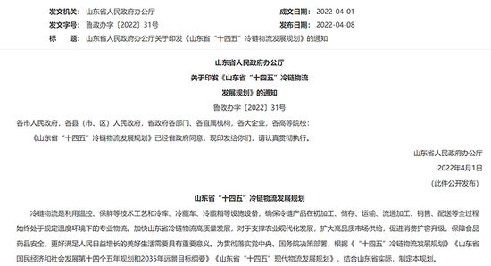 山东日前印发《山东省“十四五”冷链物流发展规划》,提出:到2025年,着力构建产销衔接顺畅、城乡全面覆盖、内外双向联通的冷链物流网络,基本形成畅通高效、安全绿色、智慧便捷、保障有力的现代冷链物流体系;到2035年,全面建成现代冷链物流体系。