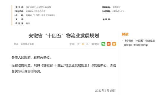 《安徽省“十四五”物流业发展规划》也提出,围绕“一圈五区”总体发展布局,依托国家物流枢纽承载城市,高质量推进国家物流枢纽建设,促进资源聚合、功能提升、联动发展,进一步提升在国家枢纽网络中的能级和地位。同时,积极引进培育大型物流企业集团、A 级物流企业、上市物流公司,支持企业通过战略性兼并重组、联盟合作等方式进行规模扩张和资源优化整合,在供应链服务、智能仓储、多式联运等领域,打造一批具有重要影响力的知名物流企业。