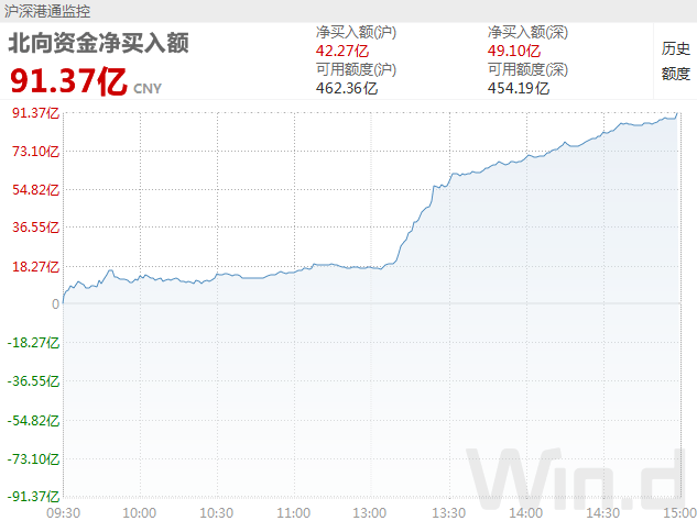 当天,北上资金净买入91.37亿元, 结束此前连续4天净卖出的态势。