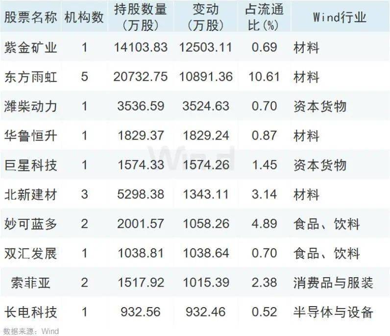 紫金矿业、东方雨虹、潍柴动力、华鲁恒升、巨星科技、北新建材等被QFII机构加大布局力度。