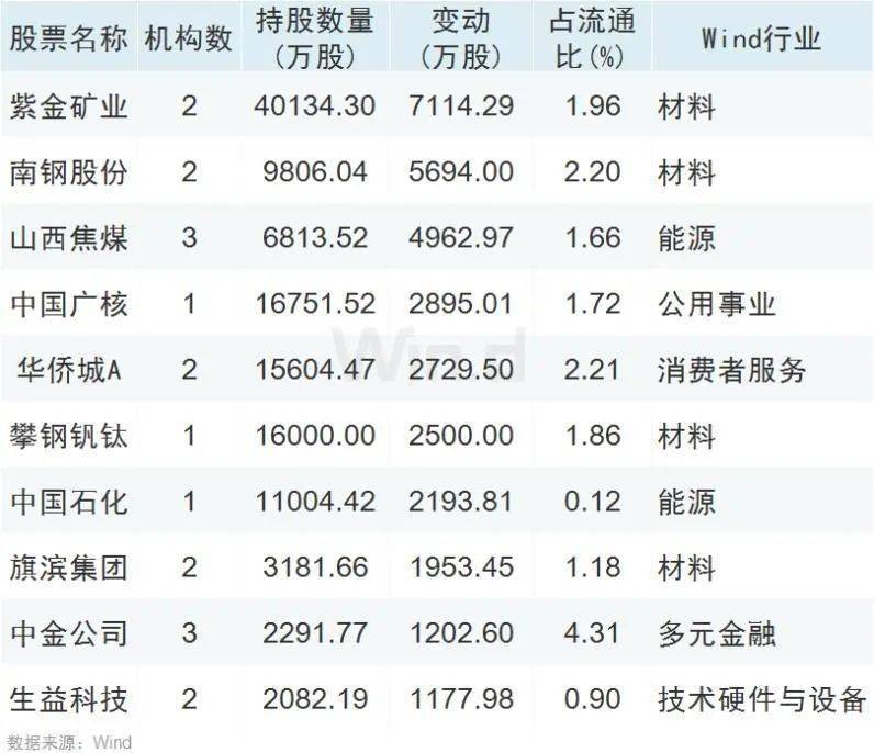 社保基金则对紫金矿业、南钢股份、山西焦煤、中国广核等股青睐有加。