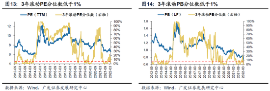 除2016年外,其他3次熊市PE均处于底部区域,3年滚动PE分位数低于5%。2022年3月15日大盘指数PE仅为6.2倍,3年滚动PE分位数低于1%,处于极低值。