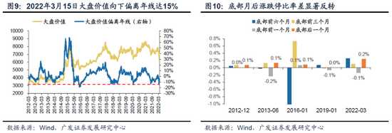 市场底部附近,大盘指数点位均向下偏离年线。从历史情况来看,指数会在向下偏离15%左右时开始反弹,2022年3月符合该底部指标。