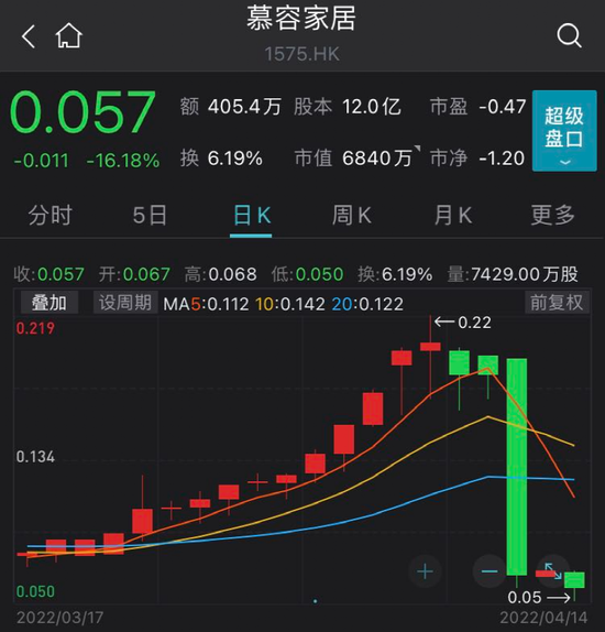 去年净亏损1.21亿元(人民币,下同)的慕容家居在业绩公布后,股价持续大跌。今日再跌超过16%,本周以来,股价已经跌去约70%。