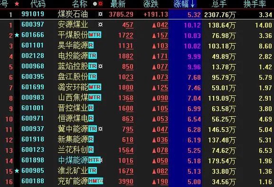 热点一:煤炭石油板块飙升逾5% 5股集体涨停