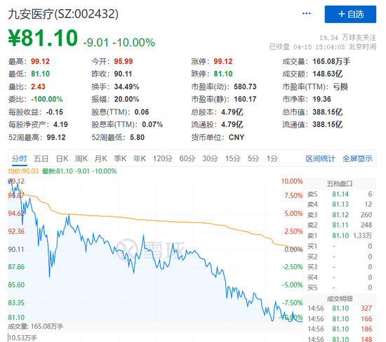 此外,九安医疗148亿成交上演天地板。该股今日以涨停开盘,早盘股价曾创历史新高。