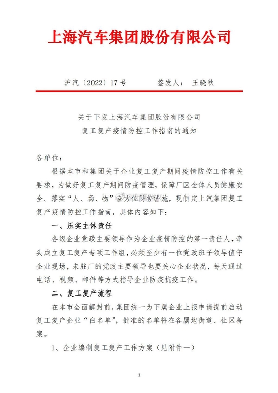 上汽准备复工复产了