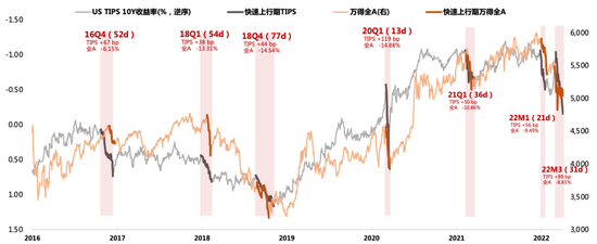 (注:第一轮TIPS快速上行冲击是1月,已经结束,反映的是加息超预期;第二轮大概率正在进行,反映的是缩表预期,有望在5月5日议息会议前后靴子落地)