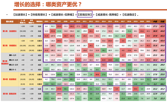 7、关于困境反转的行业配置思路:历史数据回测发现,市场每年最偏好的六类公司,基本排序如下:【加速增长】≈【持续高增长】≈【减速增长-低降幅】>【困境反转】>【减速增长-高降幅】>【低速稳定】。去年增速爆发的公司太多,因此大家聚焦在前三类的板块中,今年增速都有不同程度下降,于是市场从去年Q4开始关注第四类板块,即【困境反转】。