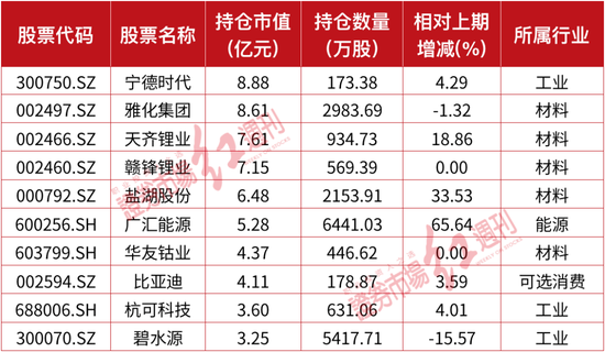 宁德时代、赣锋锂业被其强烈看好