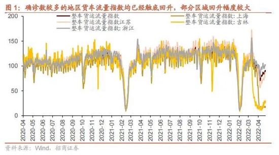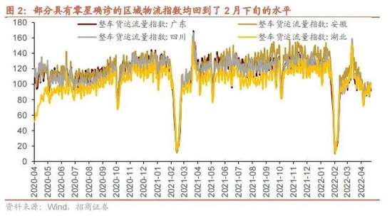 上海方面,根据 22 日上海召开的新闻发布会公布的情况来看,一周以来,666 家重点企业已有 70%实现了复工复产,企业的产能利用率也在不断提高。上汽、特斯拉等整车企业连续实现整车下线,相关零部件配套企业也陆续复工,汽车企业在产率、产能利用率有所提升。集成电路、化工骨干企业产能利用率保持在较高水平。