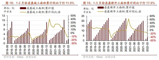 1-3 月份房屋竣工面积、商品房销售额、商品房销售面积、房屋新开工面积、开发资金来源累计值同比降幅均扩大,房地产开发投资完成额累计同比增幅收窄。1-3 月份房屋竣工面积累计值为 1.69 亿平方米,累计同比下行 11.50%,较前值降幅扩大 1.7 个百分点;1-3 月份房屋新开工面积累计值为 2.98 亿平方米,累计同比下行 17.50%,较 1-2 月份降幅扩大 5.3 个百分点。