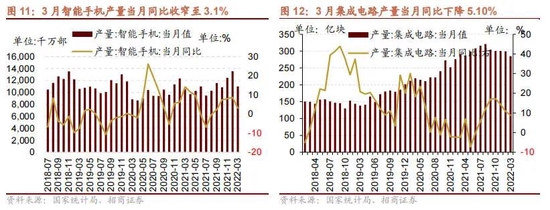 【中观·景气】3 月智能手机产量同比增幅收窄,集成电路产量同比由正转负。3 月移动通信基站产量当月同比增幅收窄,程控交换机产量当月同比增幅扩大。1-3 月 TMT 制造业固定资产投资增速收窄,房屋竣工面积、商品房销售额、商品房销售面积、房屋新开工面积、开发资金来源累计值同比降幅均扩大,房地产开发投资完成额累计同比增幅收窄。1-3 月我国发电量累计同比增幅收窄,其中风光水发电同比增幅均扩大。3 月我国用电量累计同比增幅收窄。