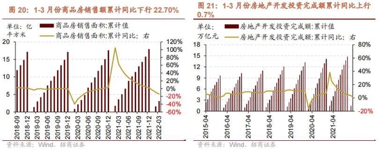 1-3 月份商品房销售额累计值为 2.97 万亿元,累计同比下行 22.70%,降幅扩大 3.4 个百分点;1-3 月份商品房销售面积累计值为 3.10 亿平方米,累计同比下行 13.80%,降幅扩大 4.2 个百分点;1-3 月份房地产开发投资完成额累计值为 2.78 万亿元,累计同比增长 0.7%,增幅较前值收窄 3.0 个百分点。