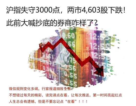 已“自闭”月余的行家,在瞥到股市的表现后,情绪变得不稳定了。而此前怒吼“市场底部”的券商,在大盘跌破3000点之际,是不是要掩面而逃。