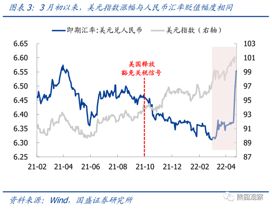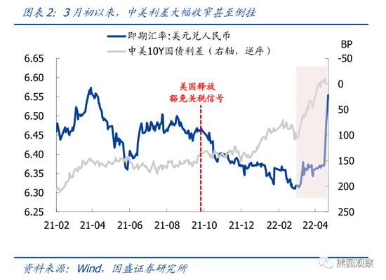 1)由于美联储加息预期升温,美元指数3月初以来累计上涨3.9%、近期更是站上100上方,美债收益率也大幅上行,中美10Y国债利差从100bp左右快速收窄,并自4月中旬开始持续倒挂(图2、图3);