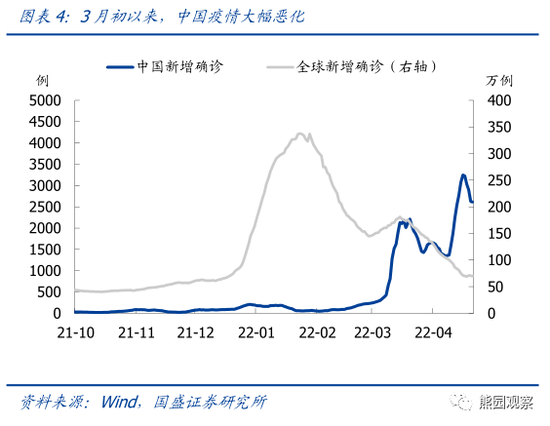 2)过去两年数据表明,全球疫情恶化、人民币则趋于升值,而3月初以来中国疫情大幅恶化(图4);