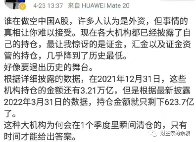 查询来源,相关消息最早可追溯到4月22日,有网友发帖提出2022一季度国家队资金清仓的疑问。