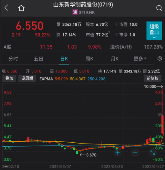 4月27日,新华制药A股开盘封涨停,港股开盘股价翻番,后回落至50%涨幅,并于早盘11时9分宣布停牌。公司称待刊发关本公司内幕消息公司。今日收盘后,新华制药再刊公告,称H股股份停牌对A股无影响。截稿时,港股暂未刊出新公告。