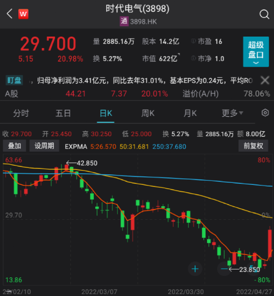 大反攻中比较有代表性的有时代电气,A股午盘封涨停后,港股同步一路高歌,从年内低位绝地反弹20.98%。