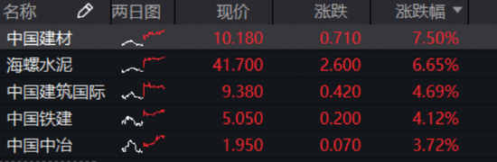 此外,基建相关的一票中字头港股均有不错涨幅,中国铁建、中国中冶、中建国际、海螺水泥、中国建材均有不同程度上涨。