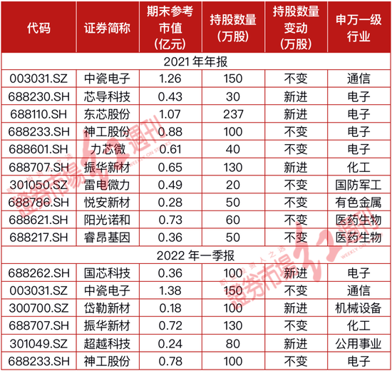 据了解,截至去年底,赵建平出现在10 只个股的十大流通股东之中,持仓市值合计为6.76 亿元。这10只个股中,有5只芯片概念股,包括中瓷电子(拟购控股股东旗下通信基站射频芯片业务)、神工股份(刻蚀机用大直径单晶硅材料商)、芯导科技、东芯股份、力芯微。值得一提的是,赵建平去年四季度新进3只个股前十大流通股股东,其中2只为芯片股。