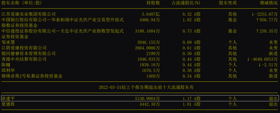 据上市公司去年年报数据显示,章建平现身爱康科技前十大流通股股东,持仓5130.99万股,持仓市值2.41亿元,占流通A股比例1.17%,为公司第三大流通股股东。但到了一季报,章建平已经退出爱康科技前十大流通股股东行列(见图1)。