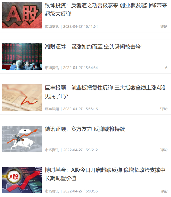 这不,今日(2022年4月27日)开盘,两市低开高走。午前,沪指已经站回2900点。其后,创业板爆发,创下近三年最大增幅。全天成交额9177亿,较上个交易日放量789亿。两市超3900只个股上涨,超200股涨停或涨超10%。截止收盘,上证综指上涨2.49%,深成指上涨4.37%,创业板指数上涨5.52%。