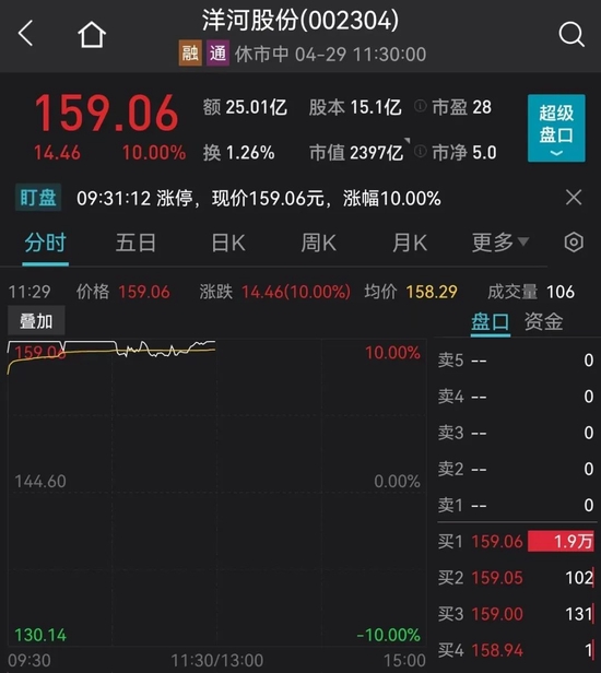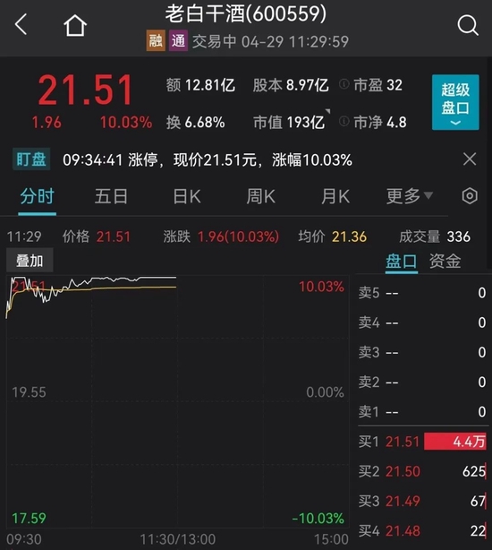 白酒股中,老白干酒也因为业绩爆表涨停。