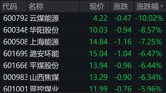 29日早盘,此前因为业绩大涨的煤炭股领跌全市场。盘中一度跌超3%。