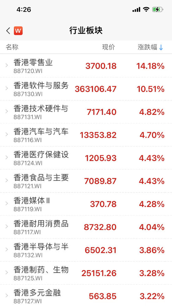 港股板块方面,互联网科技股领涨,零售、医疗保健、汽车、食品等板块涨幅靠前。