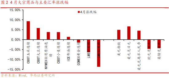 商品方面,俄乌战争导致能源与粮食价格继续抬升,全球经济滞胀风险加剧。4月CBOT玉米、大豆、小麦分别上涨9.28%、5.86%、3.78%,NYMEX轻质原油、ICE布油分别上涨3.82%、1.38%。能源与食品价格推动欧元区通胀持续上行,根据欧盟统计局估算,欧元区4月通胀率将达7.5%,能源价格同比涨幅达38%;德国联邦统计局初步估算,德国4月调和CPI大涨7.8%,高于预期值7.6%,能源价格同比涨幅高达35.8%,食品价格同比涨幅8.5%。IMF在4月份的世界经济展望中预测2022年全球经济增长3.6%,较1月份预测值下调0.8个百分点;其中欧元区2022年预测经济增长2.8%,较1月预测下调1.1个百分点。
